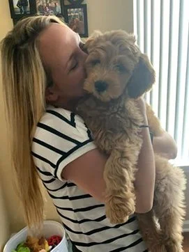 "We couldn’t recommend Schaffer Goldendoodles more! Our puppy Luna is absolutely amazing - she’s energetic yet sweet, cuddly and loves every single human and dog she meets. Katrina and Trevor were SO helpful throughout the process by answering our questions (especially as first time dog owners), posting updates on social media and ensuring we were prepared for bringing our sweet pup Luna home. We couldn’t be more happy with all extra the love, joy and laughter our goldendoodle Luna has brought into our lives Thanks, Schaffer Goldendoodles!!!"